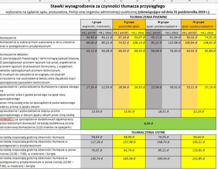 dodatkowa zakładka z aktualnymi stawkami i linkami do aktów prawnych