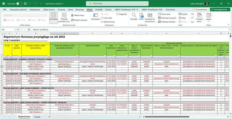 Szablon repertorium tłumacza w Excelu to nowoczesne narzędzie, które zamienia chaos w porządek.